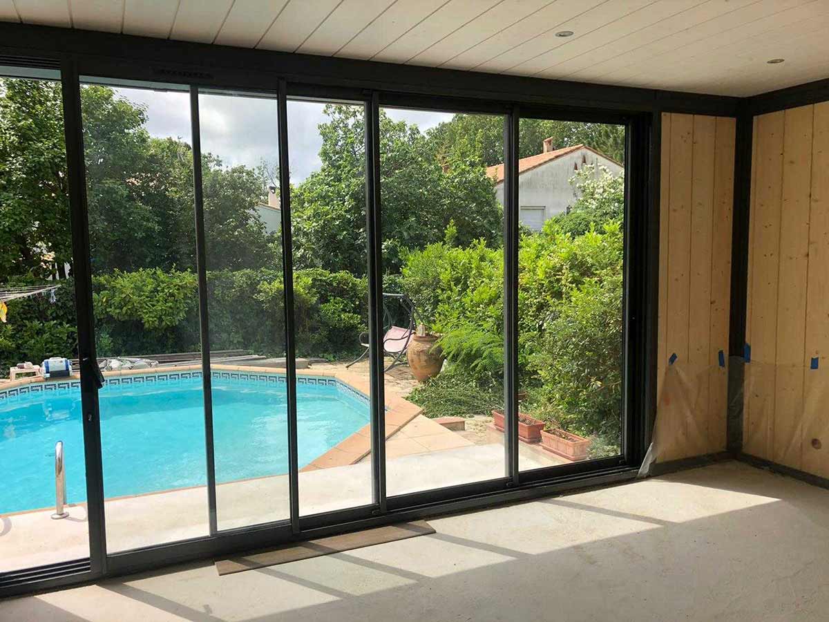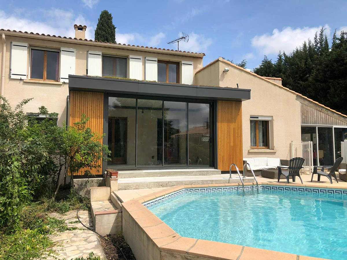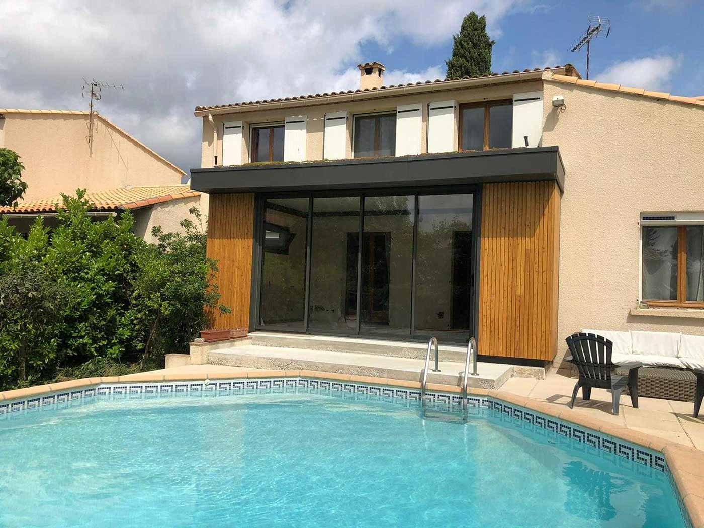 • Bardage bois  et baie vitrée de 2m50