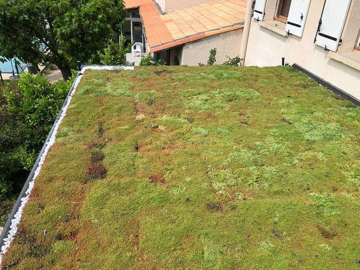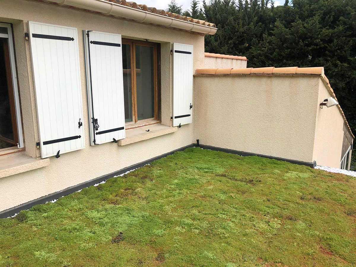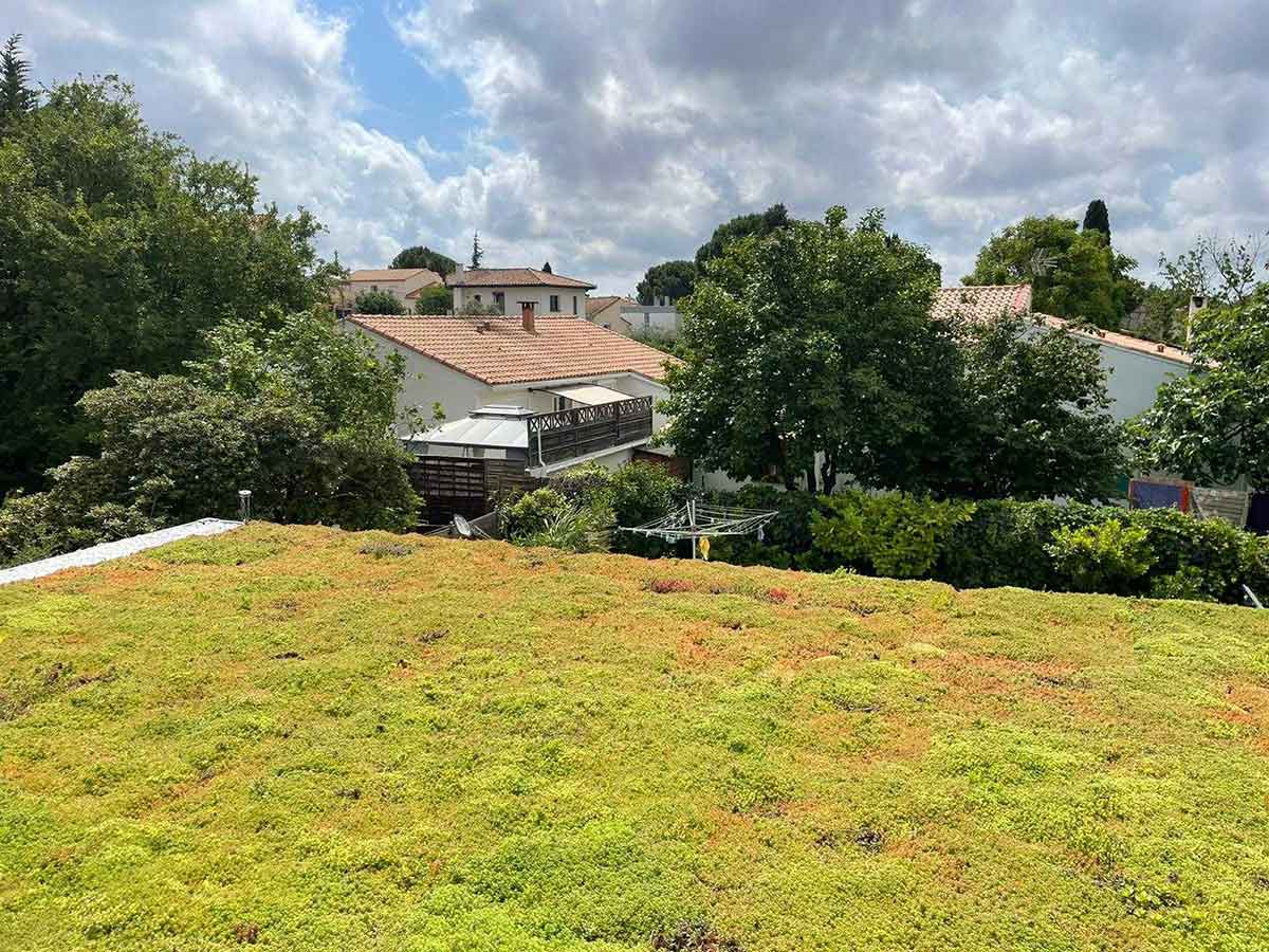 • Toiture végétale pour réaliser un maximum d’isolation l’été avec irrigation d’eau pour que les plantes restent vertes toute l’année.