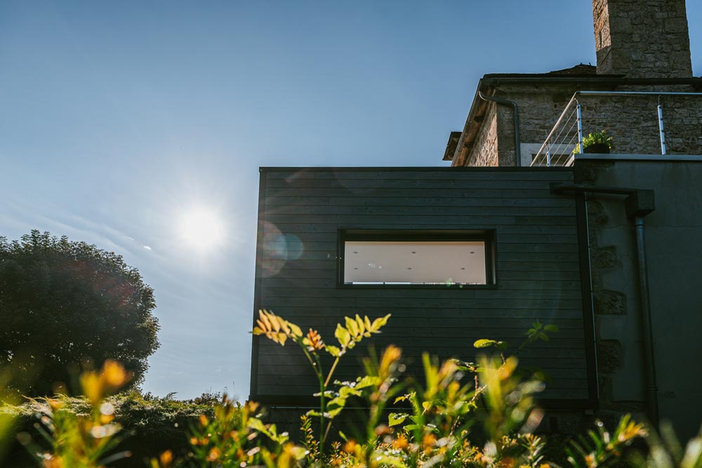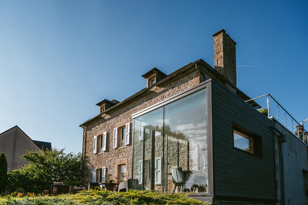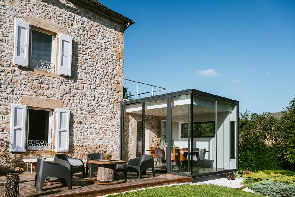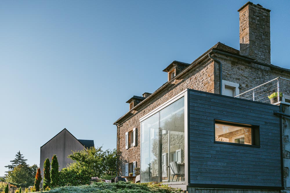 Extension minimaliste sur maison en pierre