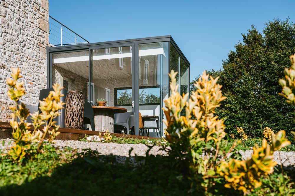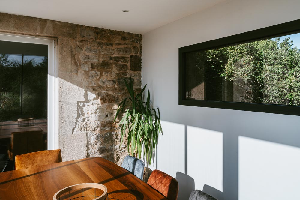 Disposer d’une pièce lumineuse et moderne, qui s’intègre à la maison en pierre.