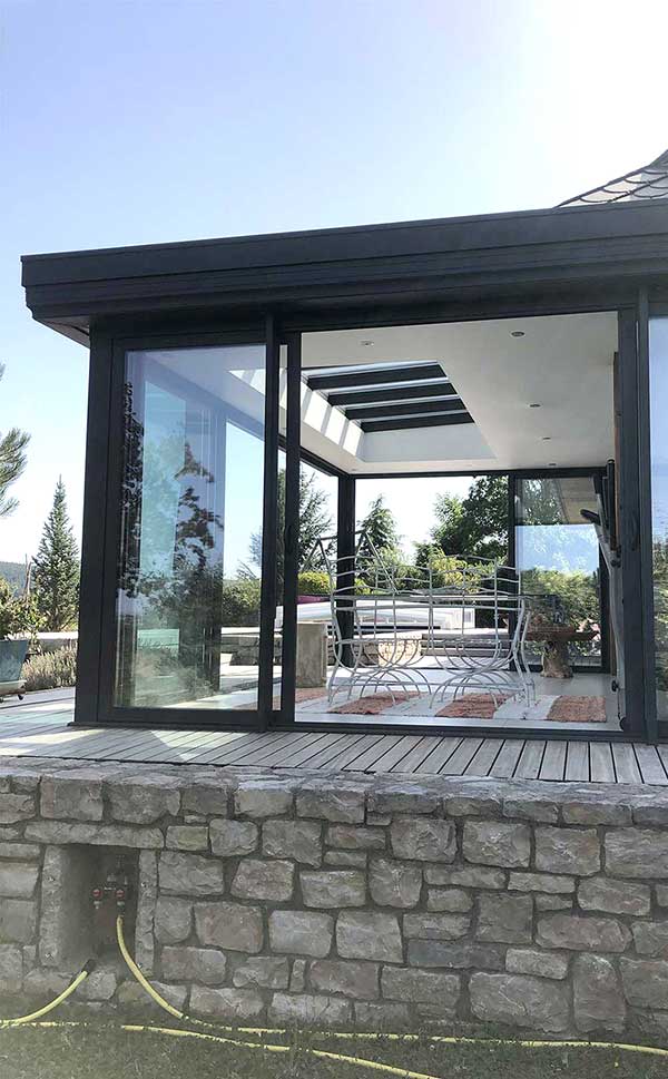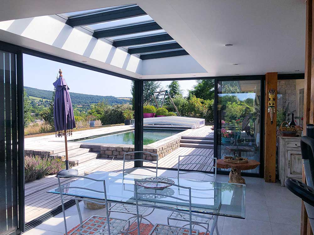 Accueil > Produits > Nos réalisations > Vivre dedans > Extension moderne ouverte sur piscine
