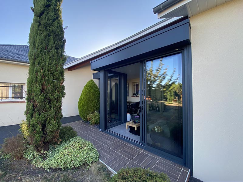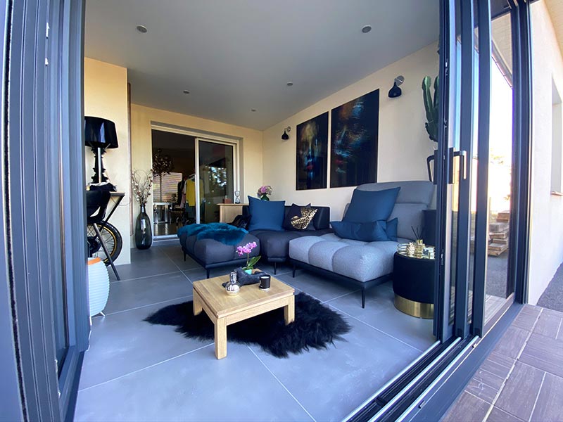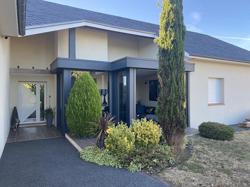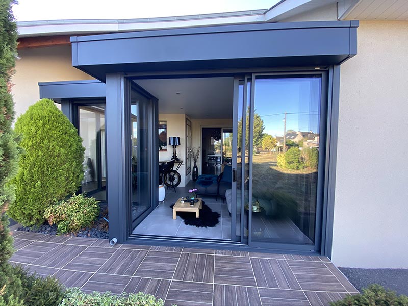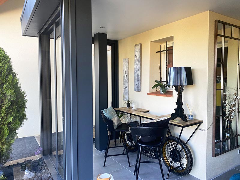 Aménager l’avant de la maison avec un espace détente et la possibilité d’en profiter toutes les saisons de l’année.