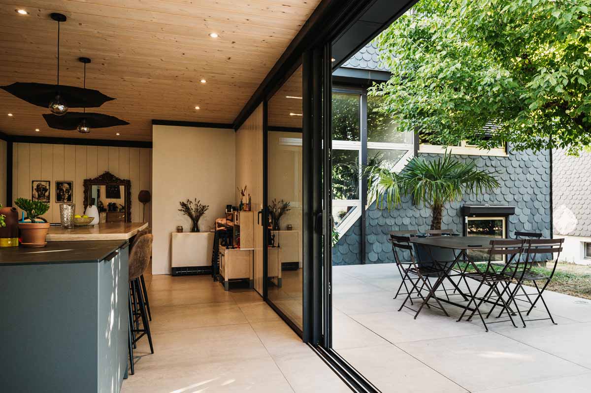 Accueil > Produits > Nos réalisations > Vivre dedans > Extension avec grand coulissant d’angle