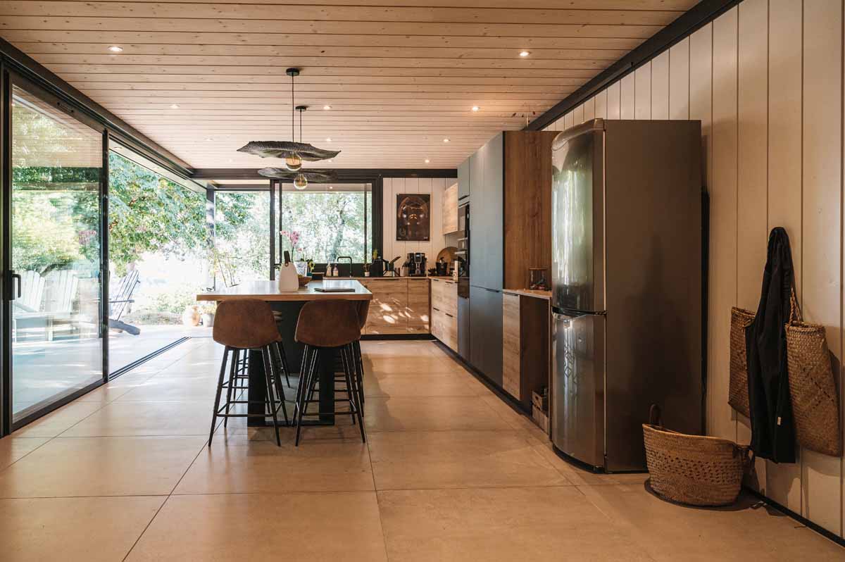 Créer une nouvelle cuisine/salle à manger de plain-pied au niveau de la terrasse pour avoir plus de place et moderniser la maison.