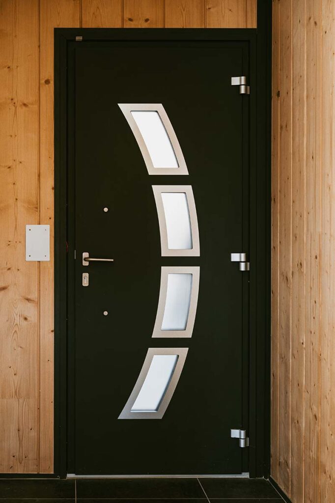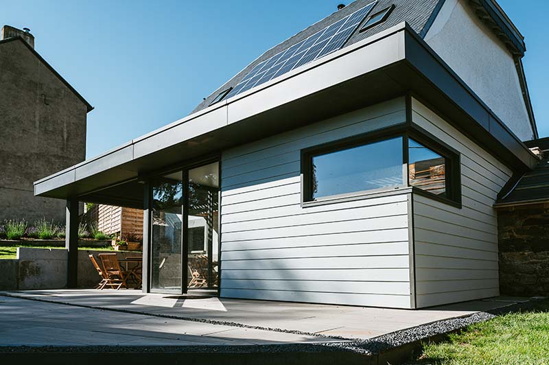 • Mur finition bois intérieur et bardage fibro-ciment extérieur