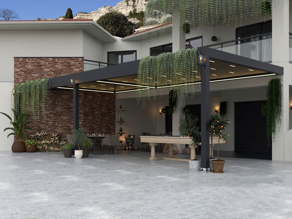 Accueil > Produits > Nos réalisations > Vivre dehors > Grande pergola bioclimatique