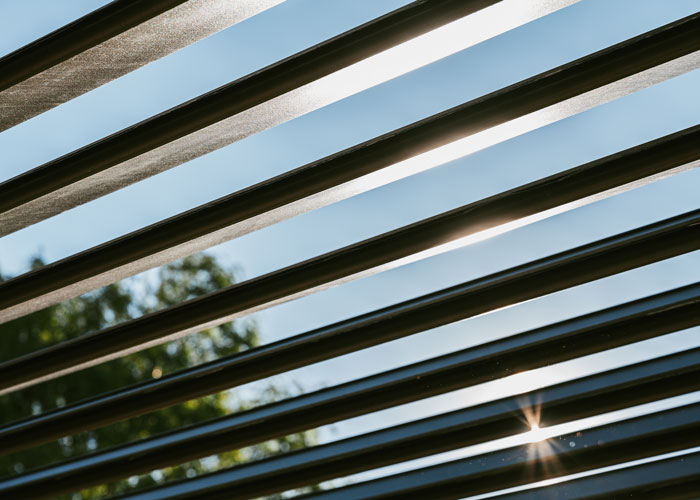 - Brise soleil orientable alliant design et confort avec gestion de l’inclinaison des lames pour gérer l’apport lumineux de la pièce.