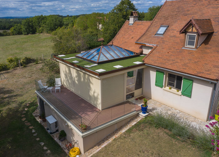 Avec les solutions Dext Habitat, le soleil ne doit plus être un problème pour vous. En effet, notre produit breveté possède un débord de toiture périphérique limitant fortement les UV. De plus, suivant votre exposition, plusieurs options s’offrent à vous pour accentuer votre confort :