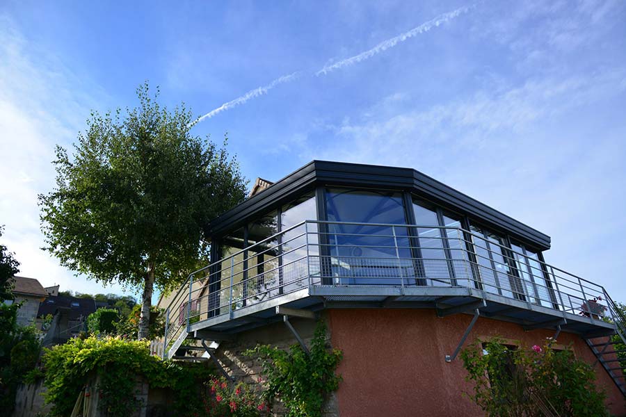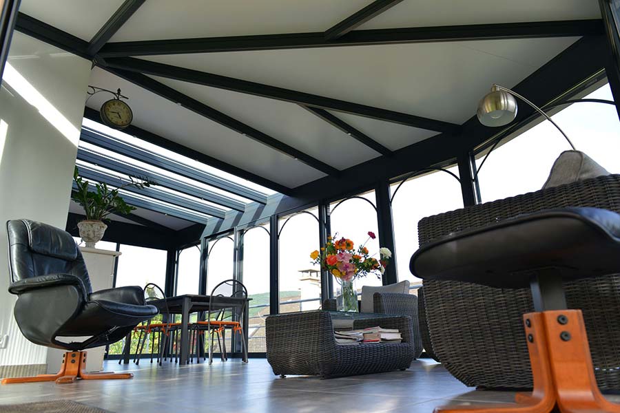 Notre véranda Contemporaine possède un style très design aux lignes droites et épurées. De ce fait, elle viendra parfaitement compléter et embellir n’importe quel style de bâtisse, de la plus moderne à la plus ancienne, sans venir la dénaturer. En effet, l’aluminium se mariera aussi bien avec une maison récente qu’avec une structure en pierre par exemple. De plus, si vous êtes à la recherche d’un espace très lumineux, la véranda Contemporaine et ses larges paroies vitrées permettra d’avoir une nouvelle pièce de vie des plus agréables. Avec ses très bonnes performances thermiques et acoustiques, il s’agit d’un véritable prolongement de votre maison, confortable en toutes saisons.